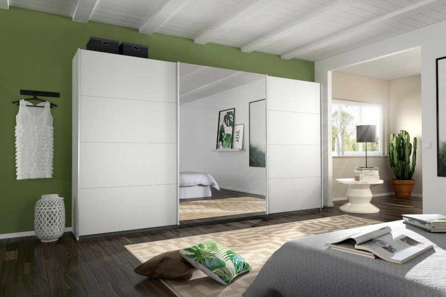 Dulap cu usi glisante KULMBACH 361x210x62cm alb alpin/oglinda configurabil