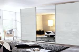 Dulap cu usi glisante KULMBACH 361x210x62cm alb alpin/ sticla alba-oglinda configurabil