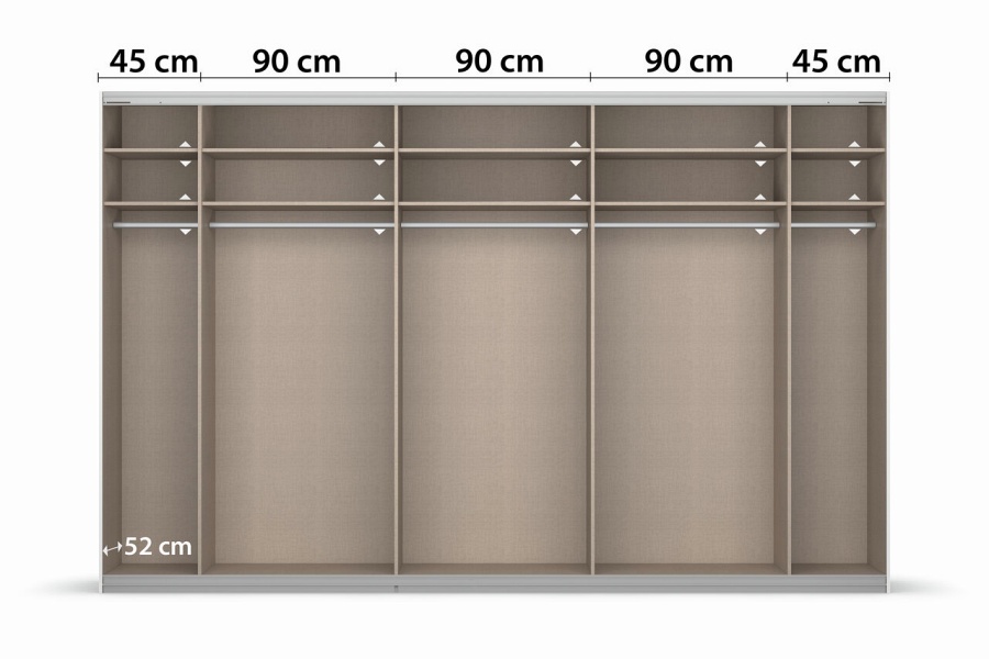- 5 compartimente: 3 compartimente de 90cm si 2 compartimete de 45cm.