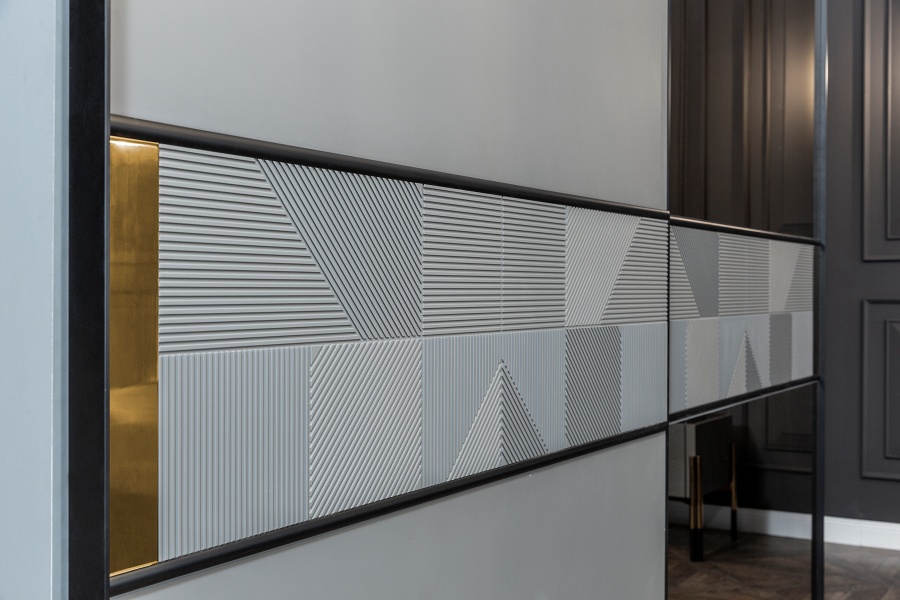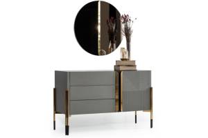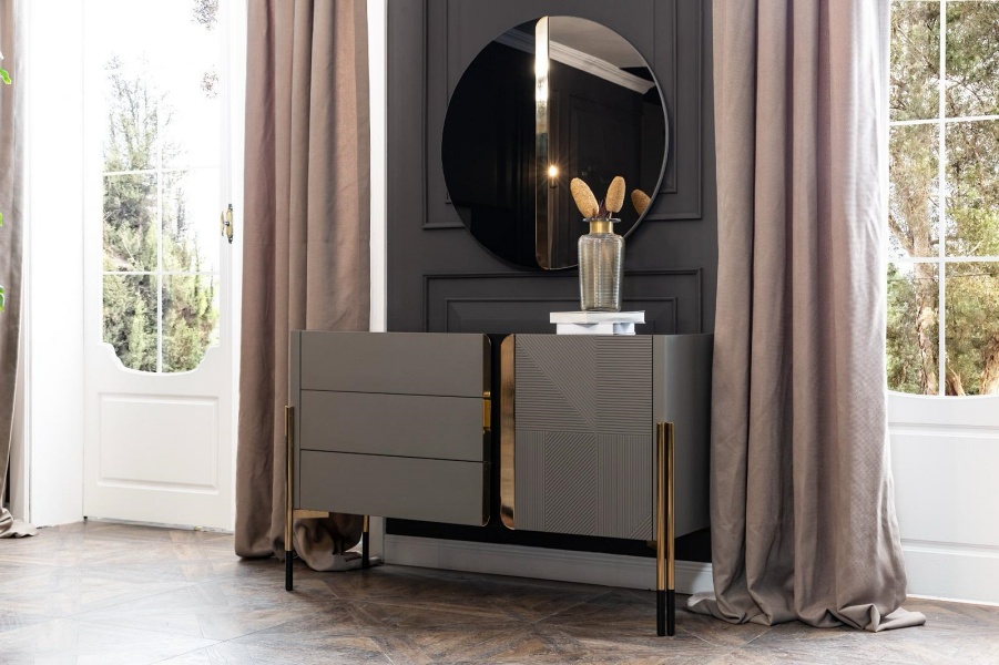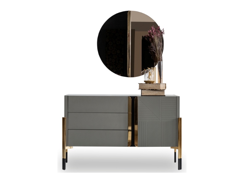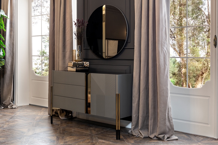 Dulapul are oglinzile tip bronz, sistem soft-close inclus.