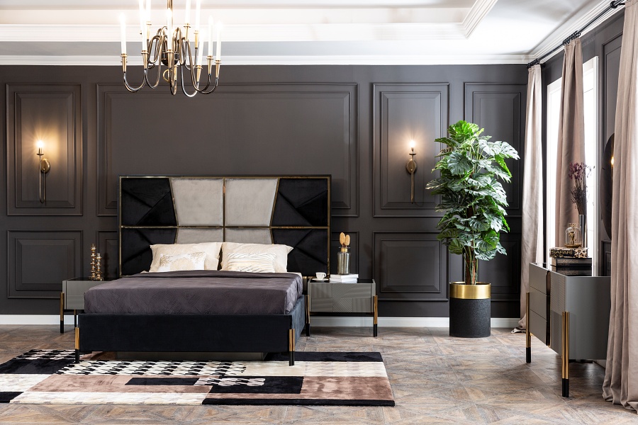 Setul contine: un dulap, un pat 180x200cm, o comoda + oglinda, 2 noptiere