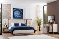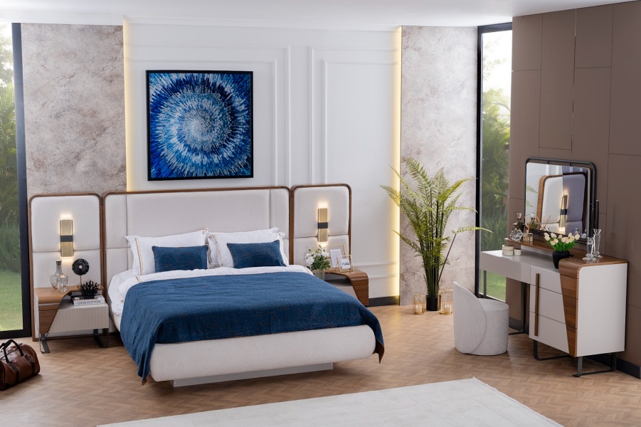 Pretul afisat NU include noptierele, salteaua, tabliile noptierelor, comoda cu oglinda, dulapul si alte accesoriile din imaginile de prezentare.