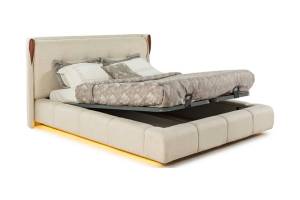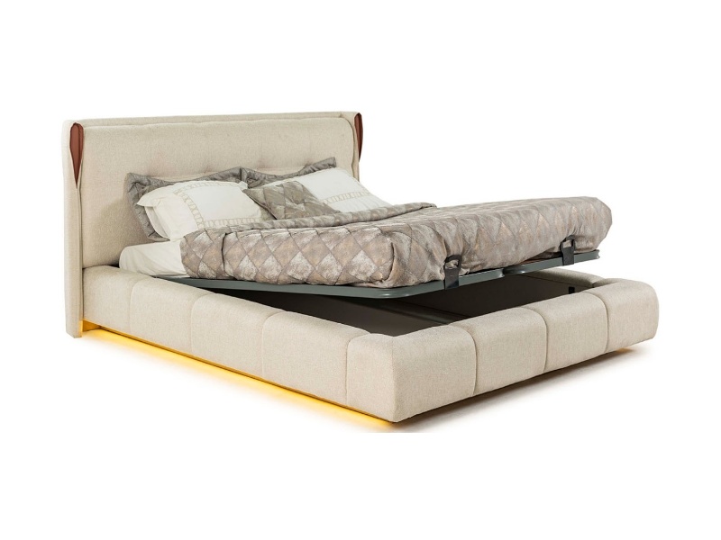 Patul este prevazut cu spatiu pentru depozitare tip lada si cu somiera (sistem de rabatare cu pistoane pe gaz)