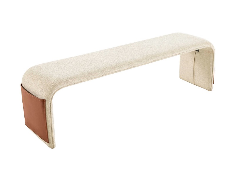 Patul este tapitat cu material textil in combinatie cu ecopiele crem + maro.