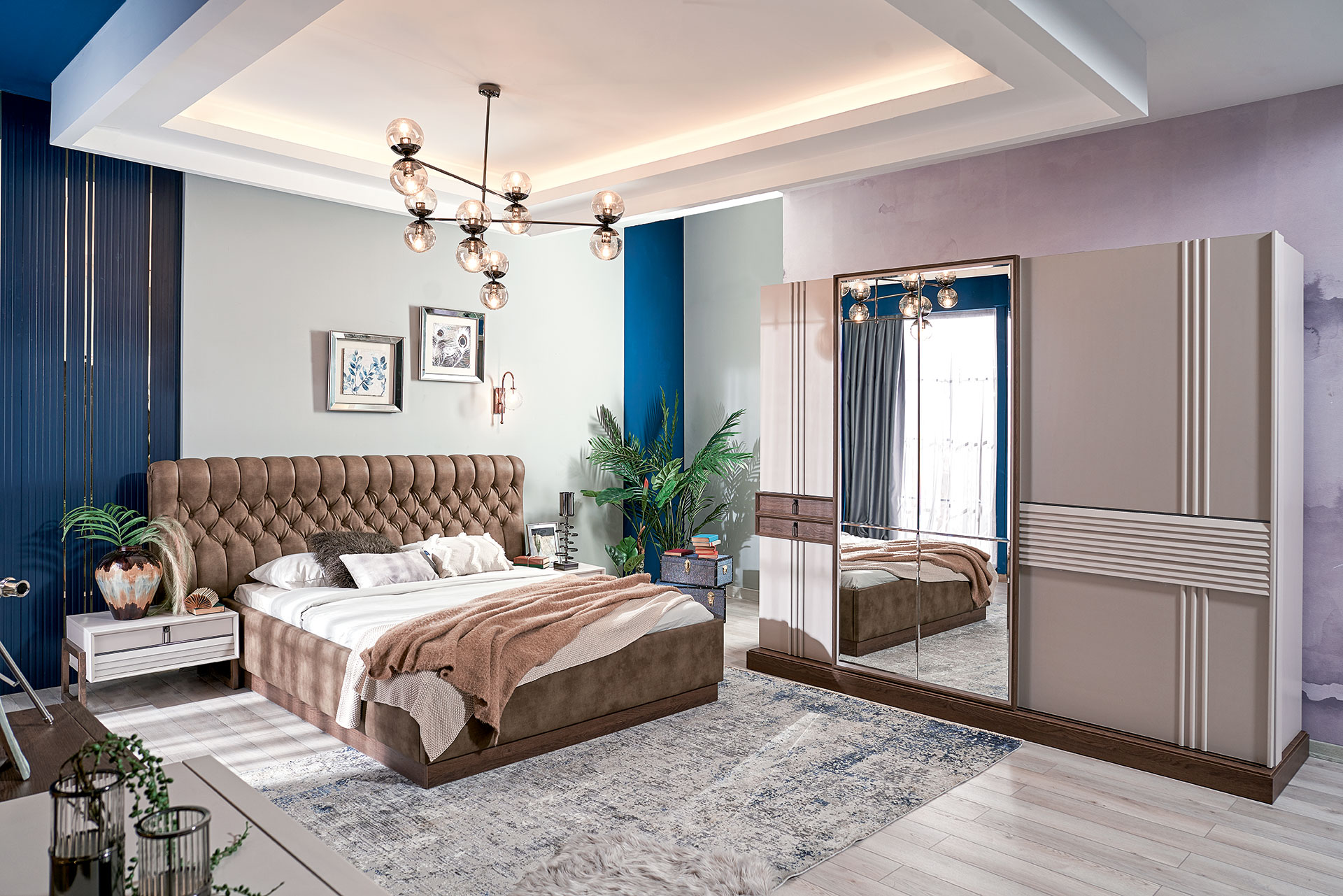 Patul este prevazut cu spatiu pentru depozitare tip lada si cu somiera (sistem de rabatare cu pistoane pe gaz)