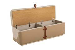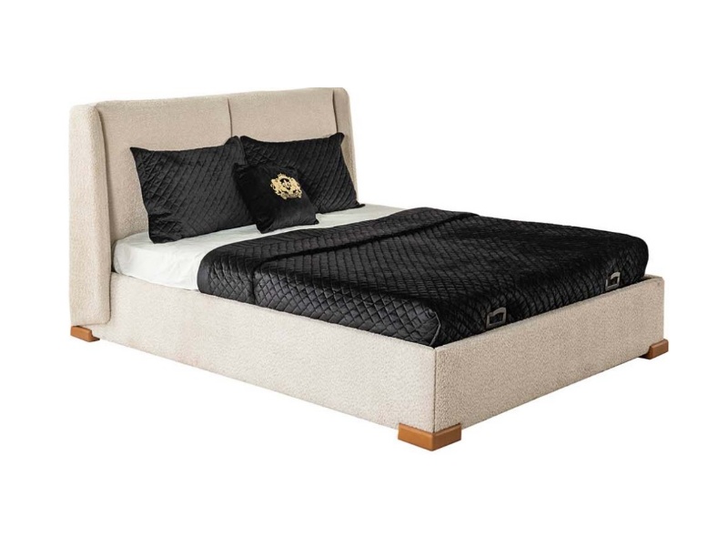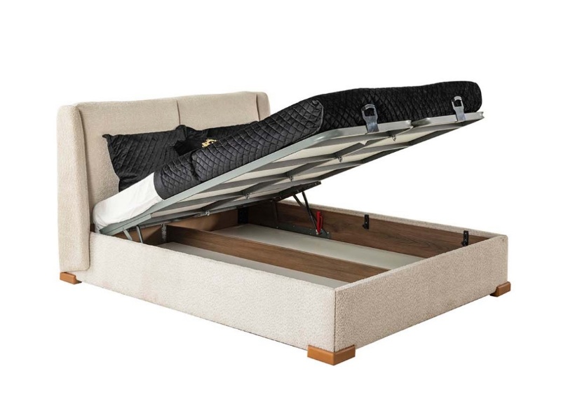 Patul este prevazut cu spatiu pentru depozitare tip lada si cu somiera (sistem de rabatare cu pistoane pe gaz)