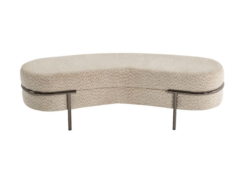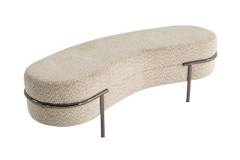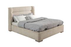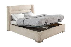 Patul este tapitat cu material textil nuanta crem.