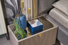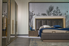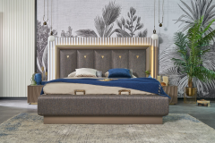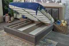 Patul este prevazut cu spatiu pentru depozitare tip lada si cu somiera (sistem de rabatare cu pistoane pe gaz)