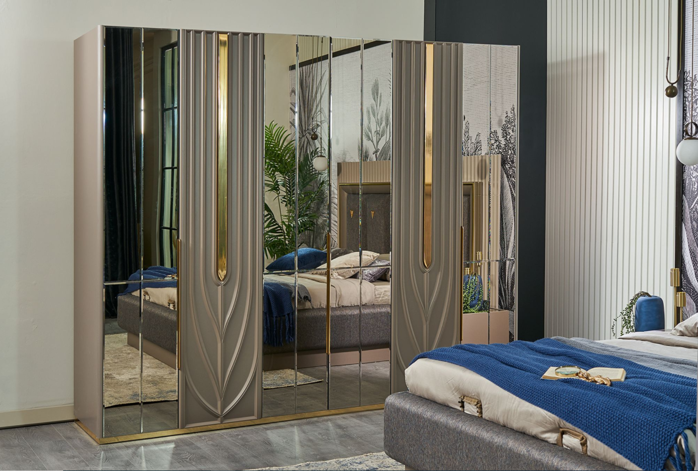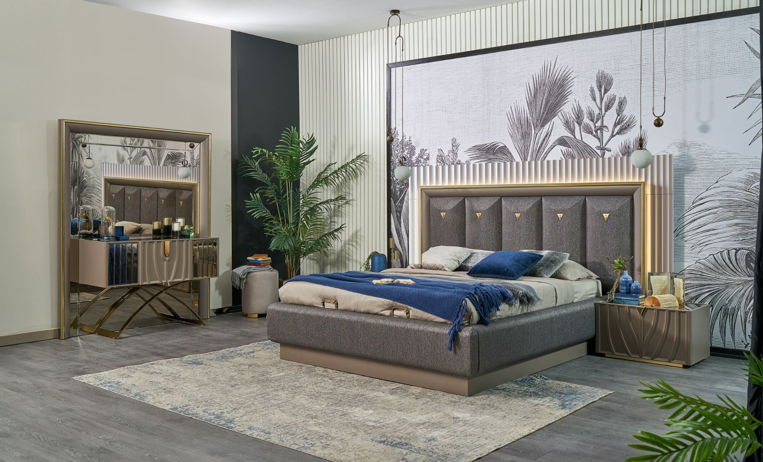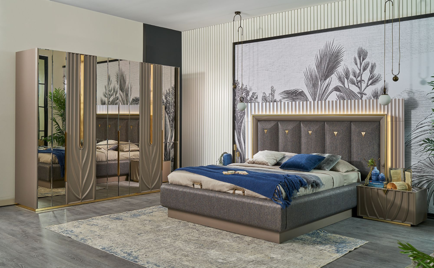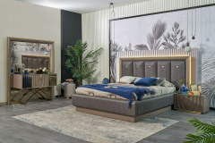 Setul contine : un dulap, un pat (160x200cm sau 180x200cm la alegere), o comoda + oglinda, 2 noptiere