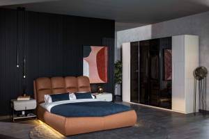 Pat tapitat cu lada pentru depozitare (160x200cm) si Led VOLARE