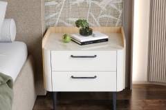 - Sticla (4mm) pe blatul/ tavanul comodei si a noptierelor cu model de marmura Calcatta Oro