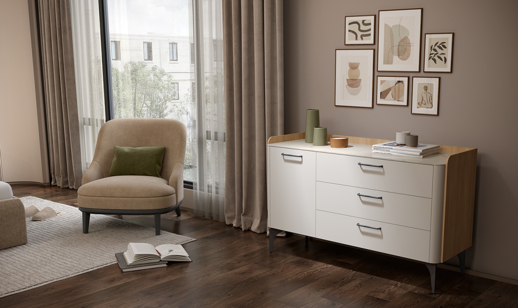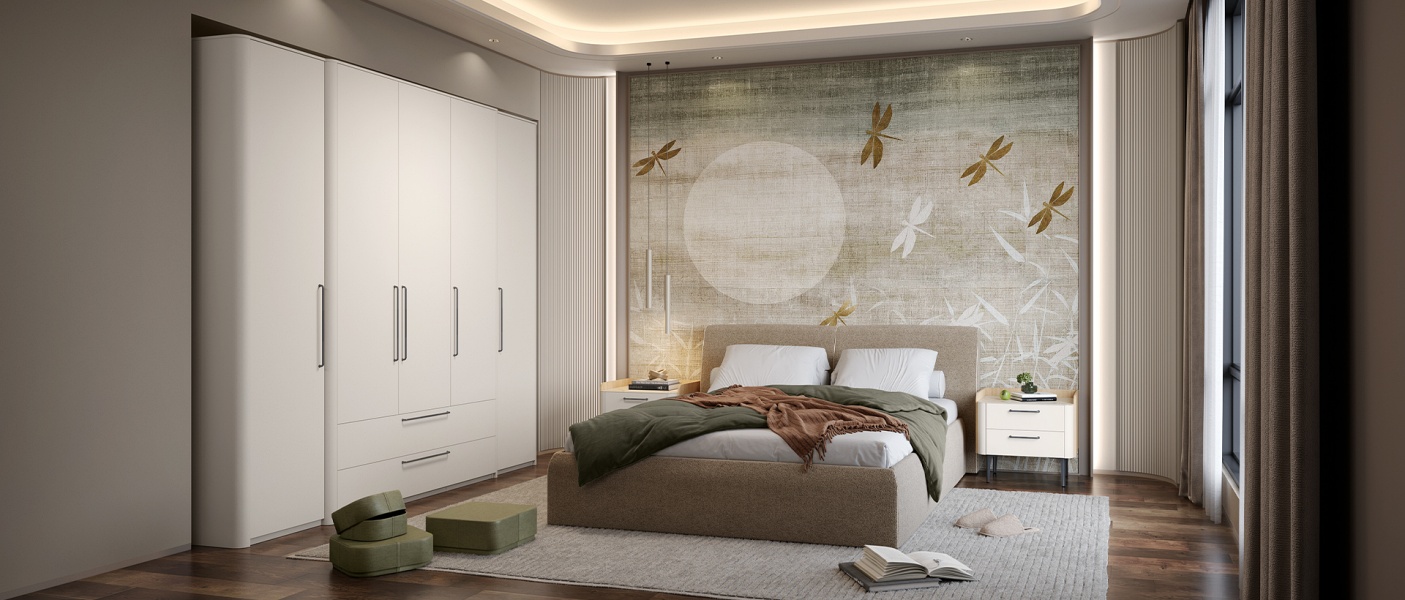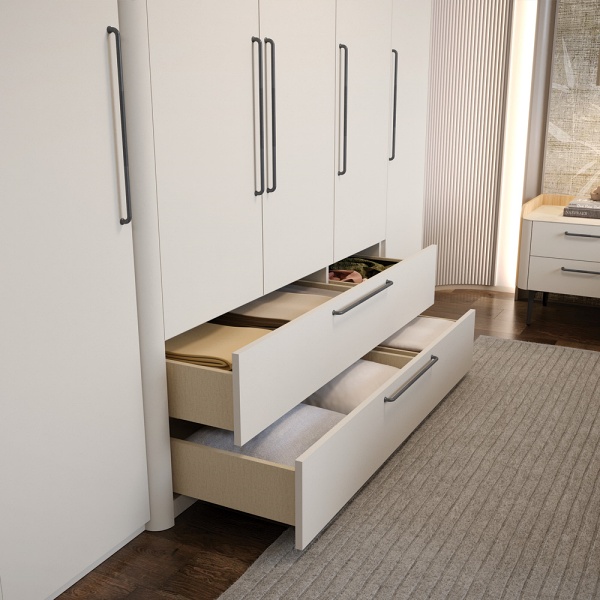 - Dulapul, noptierele si comoda au sistem de inchidere soft-close
