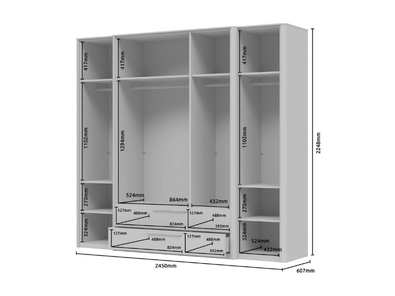 - Standard dulapul vine cu: 4 bare pentru umeras (3 mici si 1 mare) + 8 polite (7 mici si 1 mare)