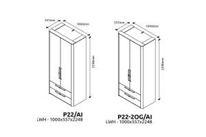 Dulap cu 2 usi cu balamale si 2 sertare AIR 100x225x56cm Pepper White, manere antracit