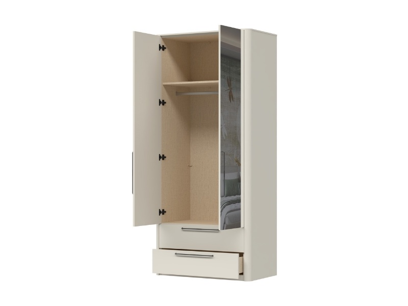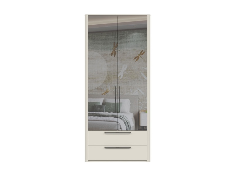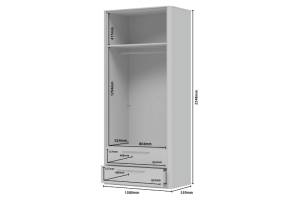 Dulap cu 2 usi cu balamale si 2 sertare AIR 100x225x56cm Pepper White/ oglinda, manere antracit