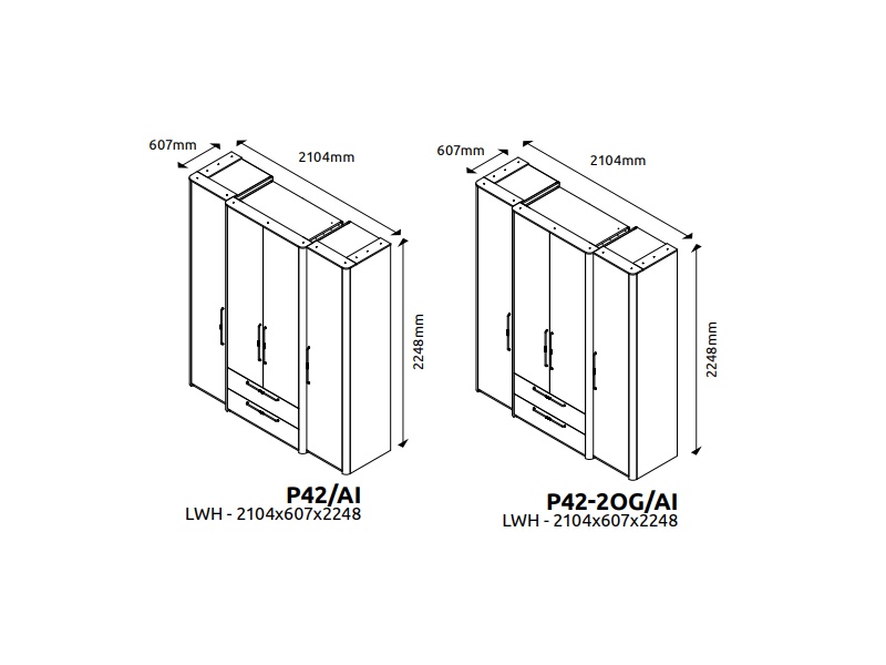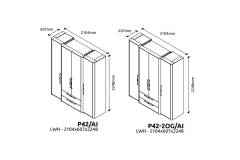 Dulap cu 4 usi cu balamale si 2 sertare AIR 187x225x61cm Pepper White/ oglinda, manere antracit