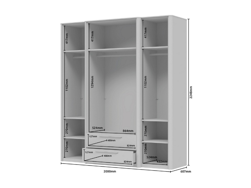 - Standard dulapul vine cu: 1 bara pentru umerare mare + 2 bare mici si 1 polita mare + 6 polite mici