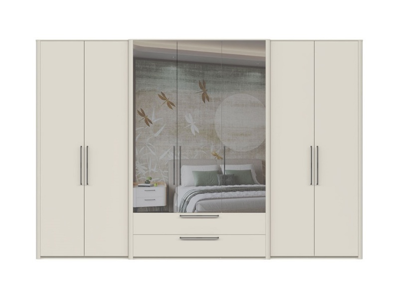 Dulap cu 7 usi cu balamale si 2 sertare AIR 335x225x61cm Pepper White/ oglinda, manere antracit
