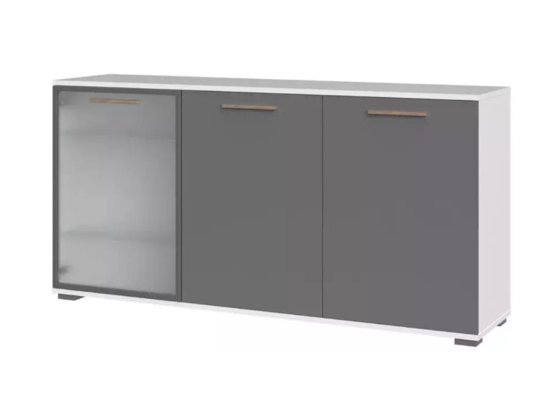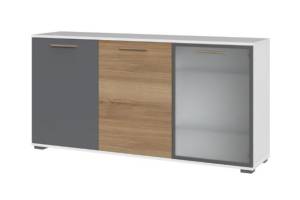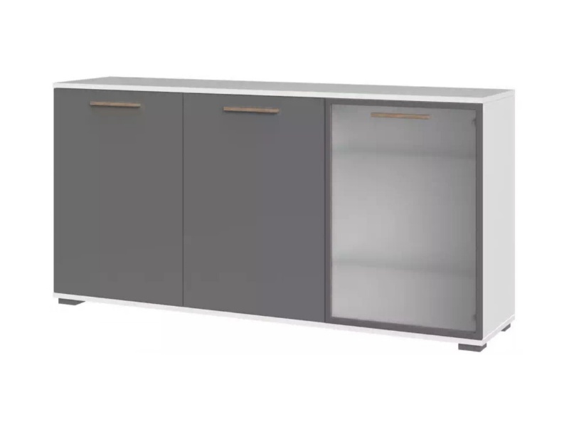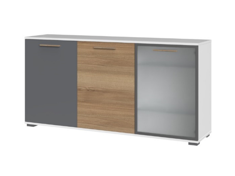 - comoda are 3 usi (1 usa decor grafit mat si 1 usa decor nuc Pacific si 1 usa sticla sezurizata sablata)