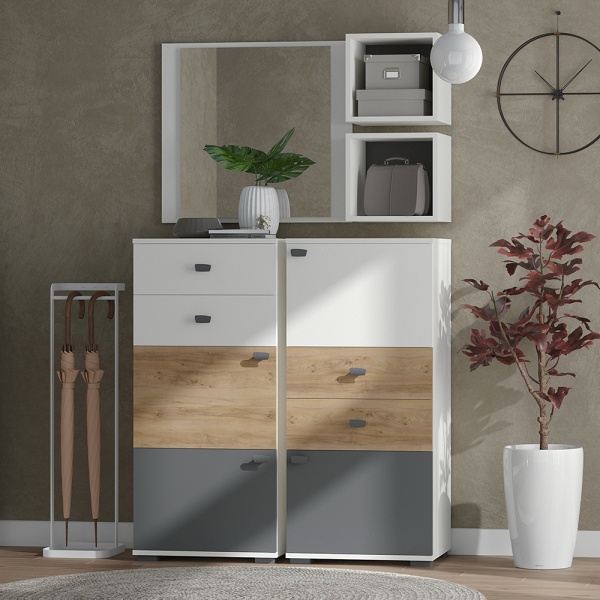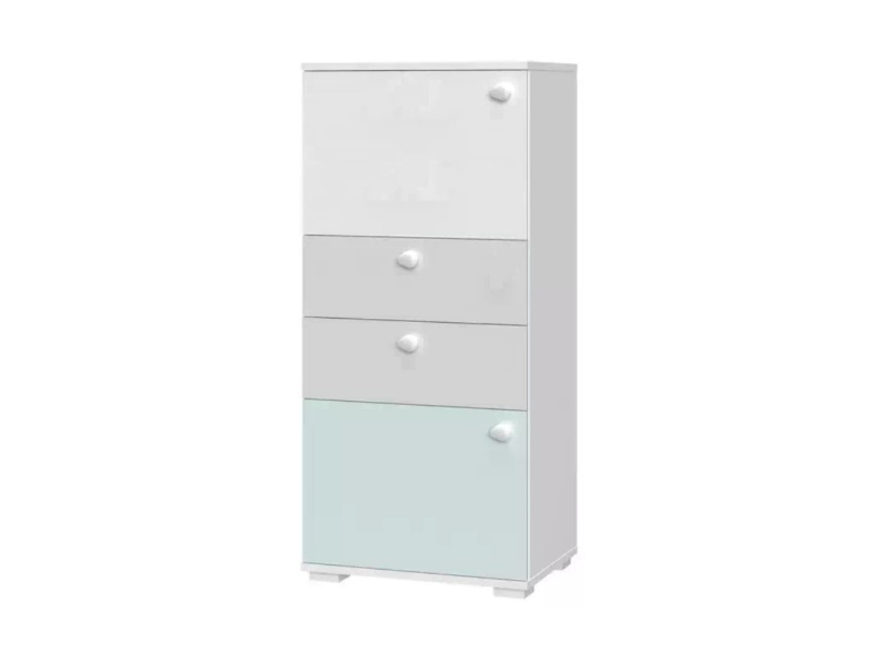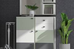 - comoda are 2 usi decor (grafit mat + Nuc Pacific) + 2 sertare decor alb mat
