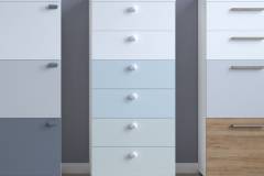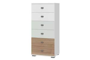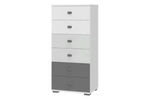 - comoda are 4 sertare decor ( 2 sertare alb mat + 2 sertare grafit mat + 2 sertare nuc Pacific)