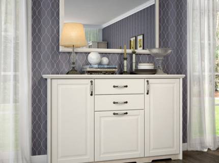 Comoda cu 3 usi si 2 sertare EVERGREEN 159x102x49cm ivory/ pin polar