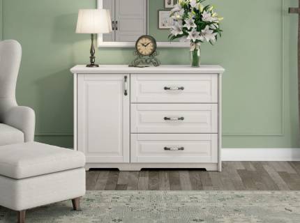 Comoda cu 1 usa si 3 sertare EVERGREEN 131x88x48cm ivory/ pin polar
