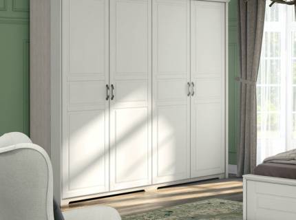Dulap cu 4 usi cu balamale EVERGREEN 224x224x58cm ivory/ pin polar