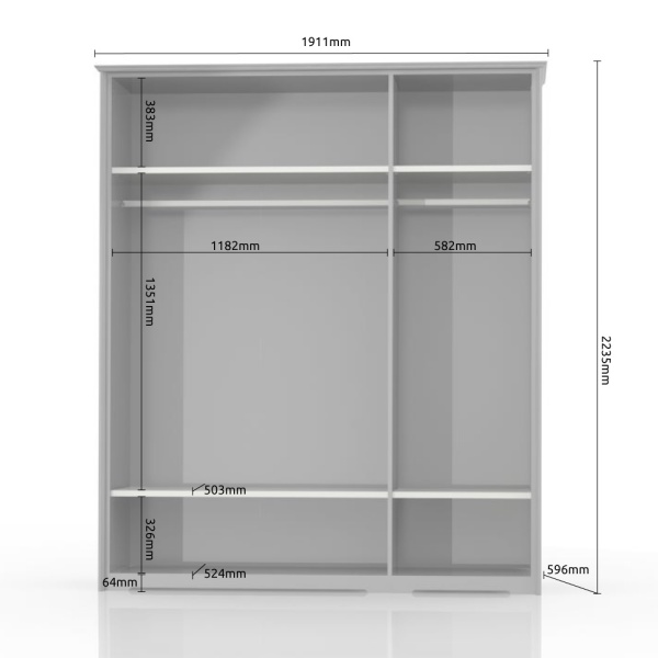 Dulap cu3 usi cu balamale EVERGREEN 191x224x58cm ivory/ pin polar