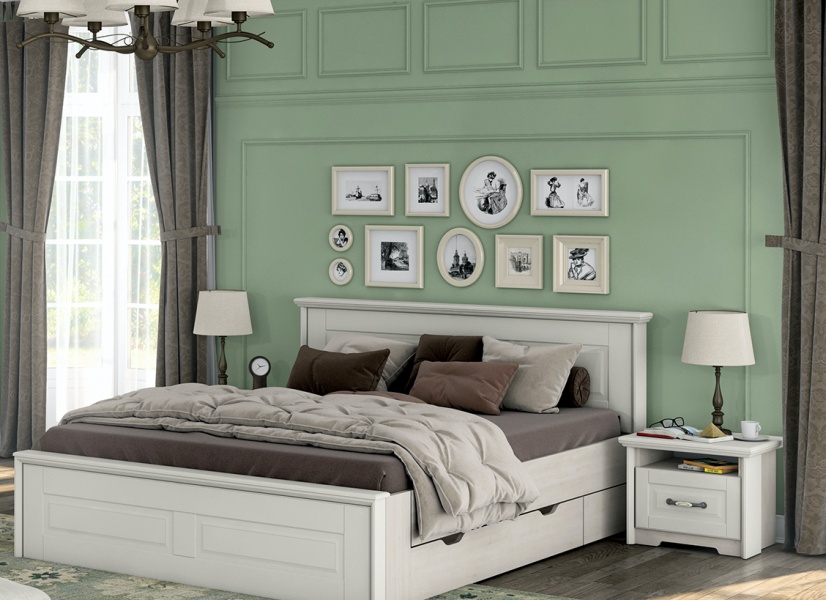 Pat cu somiera EVERGREEN 160/ 180cm ivory/ pin polar
