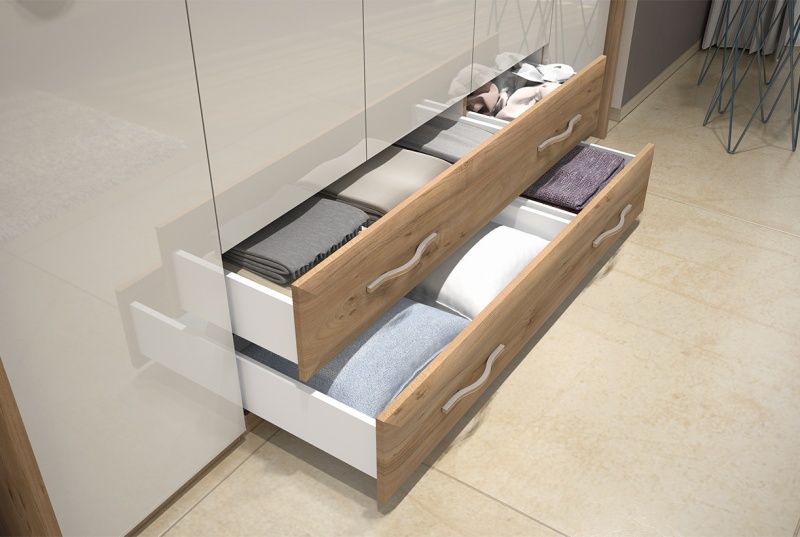 Pentru dulap puteti achizitiona separat: caseta cu 3 sertare (UF3), polite suplimentare (FM-GL) sau (FV-GL) si lift pentru haine (ML).