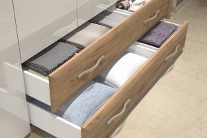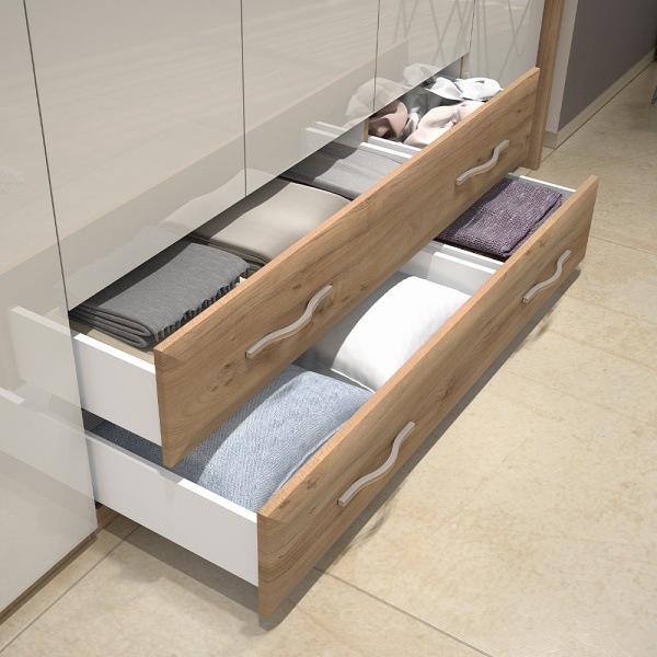 - doua usi (18mm) + 2 sertare decor bej lucios si nuc Pacific