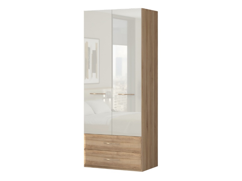 Dulap cu 2 usi si 2 sertare GALA 90x224x57cm bej lucios/ Nuc Pacific