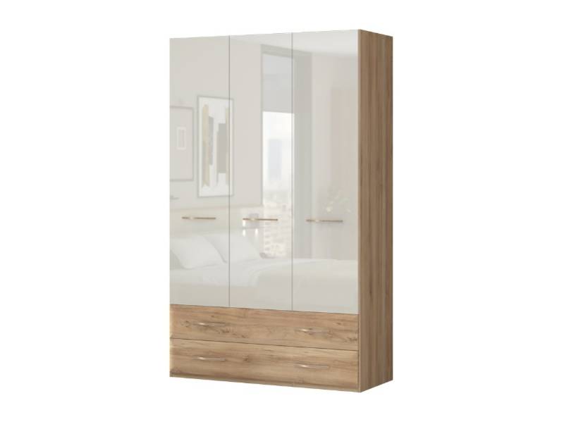 Dulap cu 3 usi si 2 sertare GALA 137x224x57cm bej lucios/ Nuc Pacific