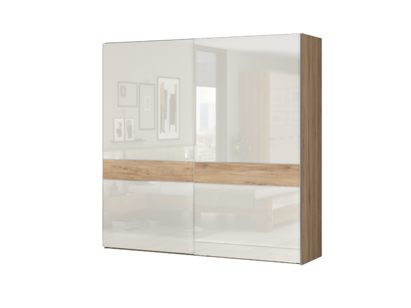 Dulap cu usi glisante GALA 230x224x61cm bej lucios/ Nuc Pacific