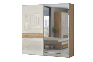 Dulap cu usi glisante GALA 230x224x61cm bej lucios/ Nuc Pacific - oglinda