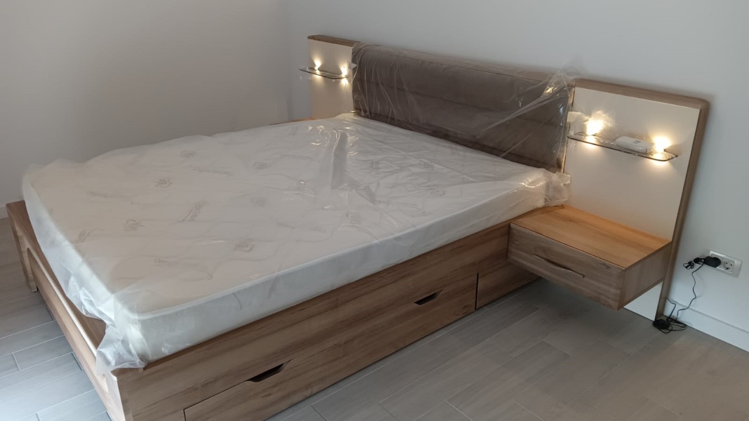 Pretul afisat nu include montajul, sertarul pentru depozitare, salteaua, noptierele si accesoriile din imaginea de prezentare a produsului.