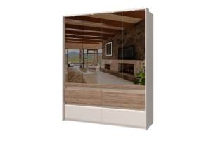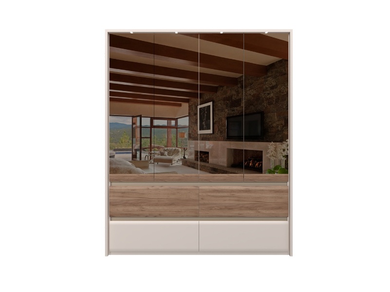 Dulap cu 4 usi si 4 sertare INVICTUS 187x226x60cm casmir/ stejar tabac - oglinda