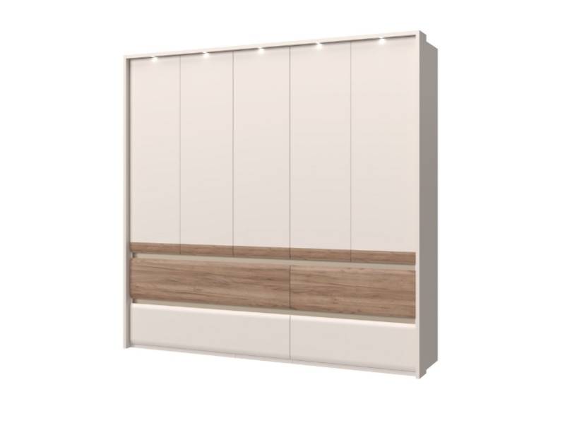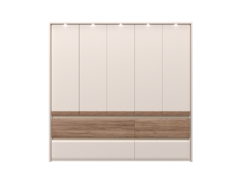Dulap cu 5 usi si 4 sertare INVICTUS 232x226x60cm casmir/ stejar tabac