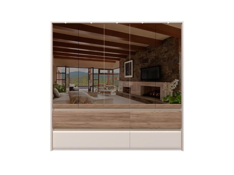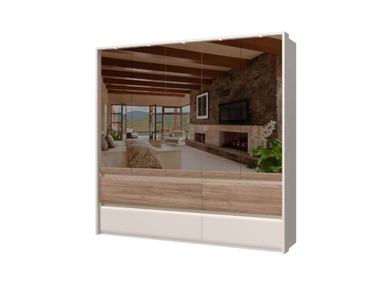 Dulap cu 5 usi si 4 sertare INVICTUS 232x226x60cm casmir/ stejar tabac - oglinda