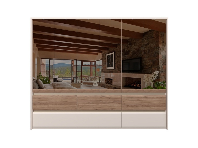 Dulap cu 6 usi si 6 sertare INVICTUS 277x226x60cm casmir/ stejar tabac - oglinda