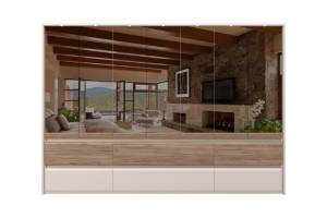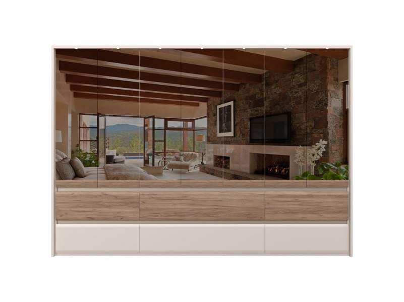Dulap cu 7 usi si 6 sertare INVICTUS 322x226x60cm casmir/ stejar tabac - oglinda