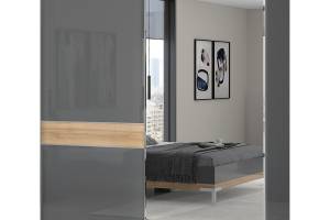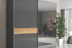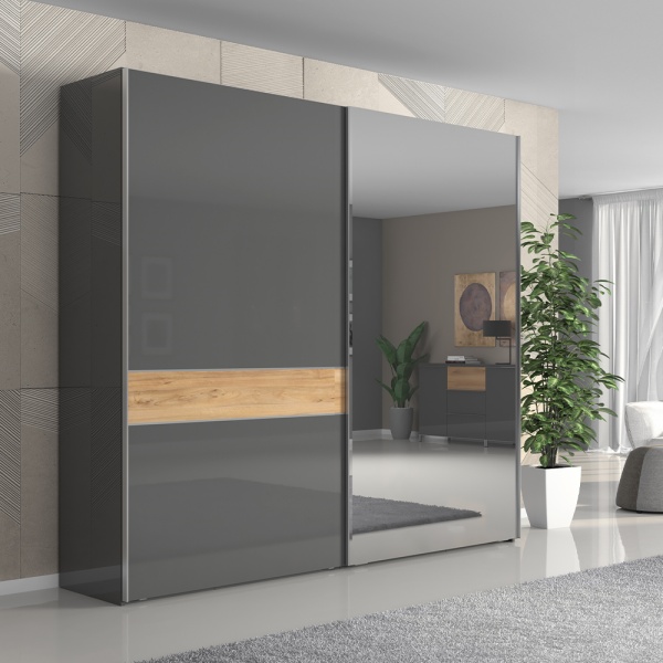 Dulap cu usi glisante ONYX 230x224x61cm antracit lucios/ nuc Pacific - oglinda, maner crom