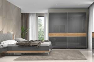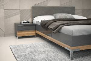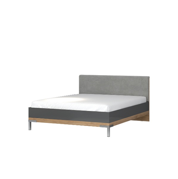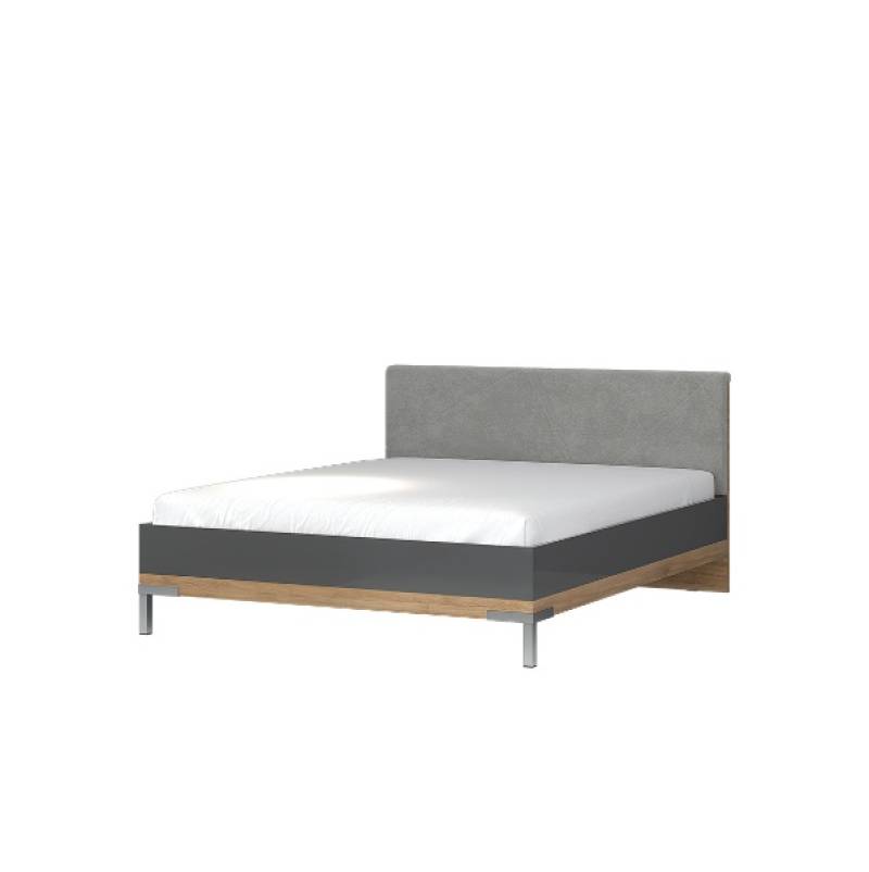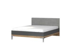 Pat cu somiera ONYX 160 / 180cm antracit lucios/ nuc Pacific + material gri