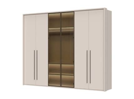 Dulap cu 6 usi cu balamale OPERA 272x224x56cm casmir/ sticla Parsol, manere maro