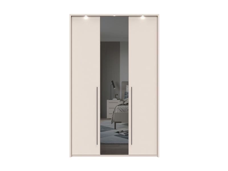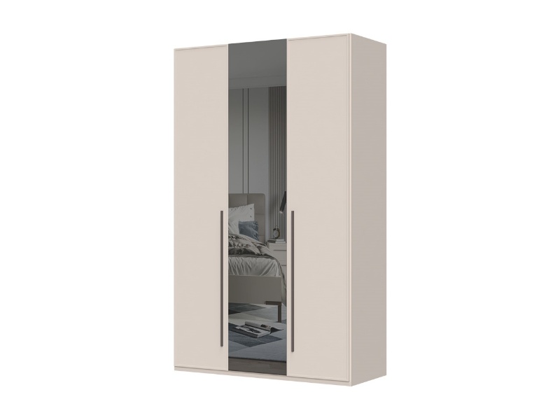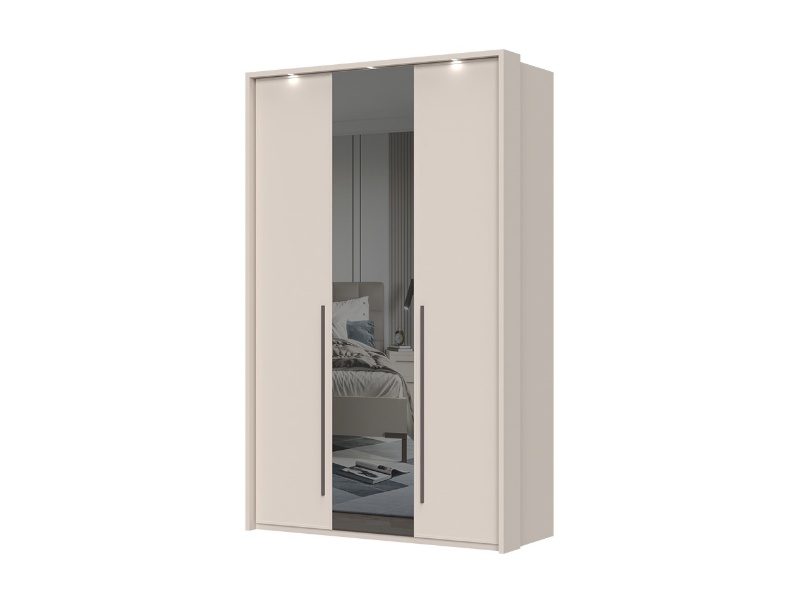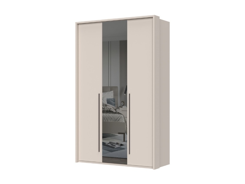 Dulap cu 3 usi cu balamale OPERA 137x224x56cm casmir/ oglinda, maner maro
