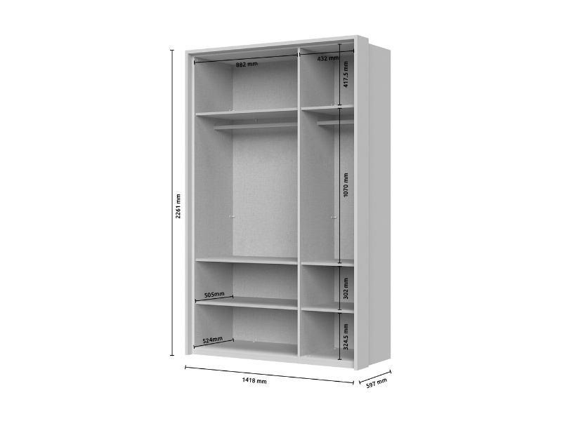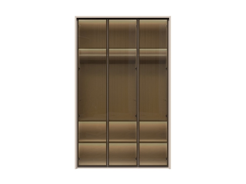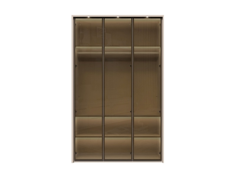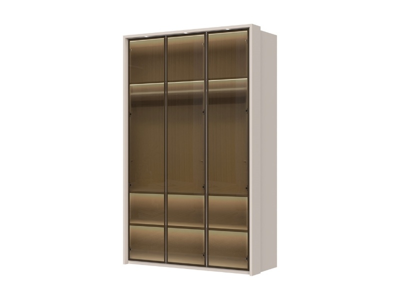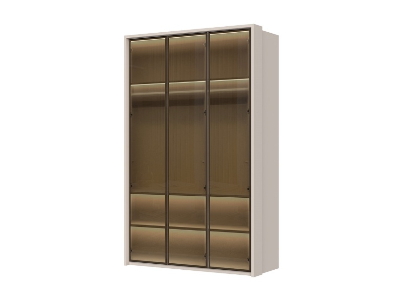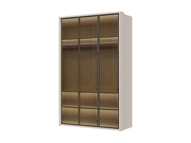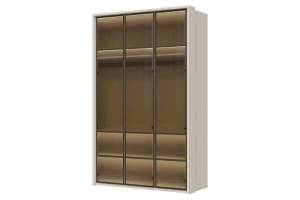 Dulap cu 3 usi cu balamale OPERA 142x226x60cm casmir/ sticla Parsol, maner maro