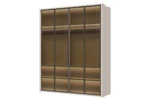 Dulap cu 4 usi cu balamale OPERA 182x224x56cm casmir/ sticla Parsol, manere maro