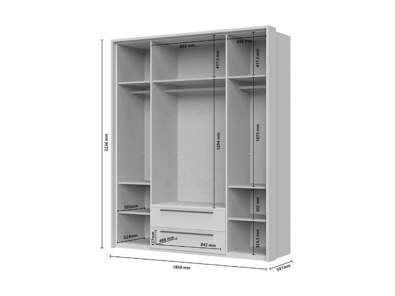 Dulap cu usi glisante OPERA 230x224x61cm casmir/ oglinda, maner maro