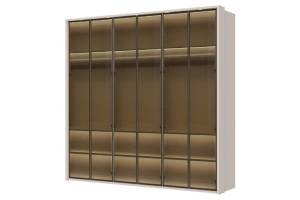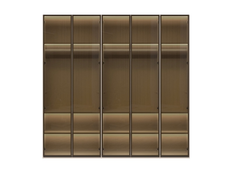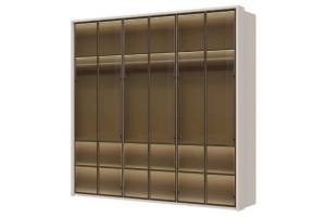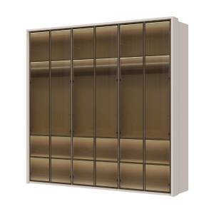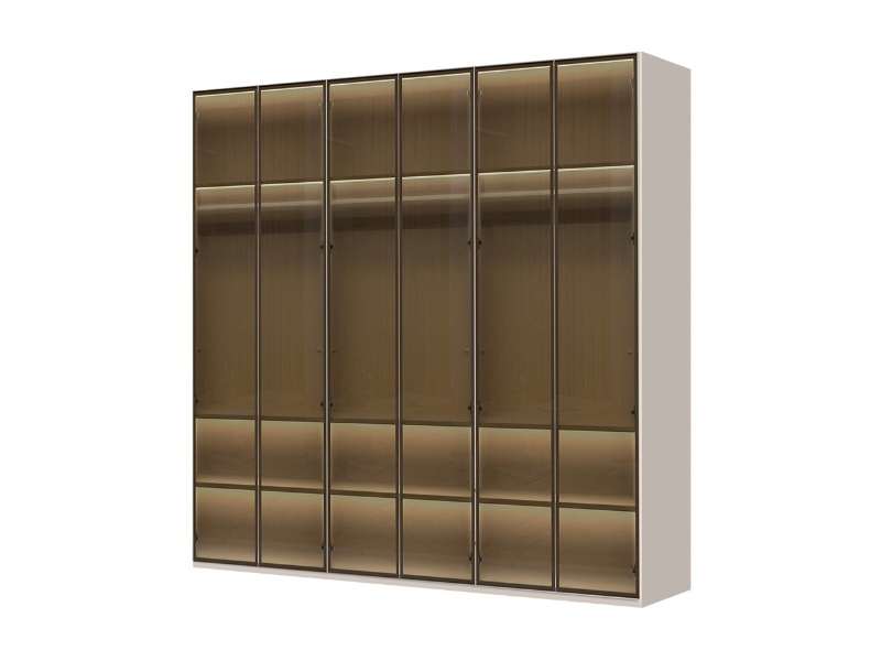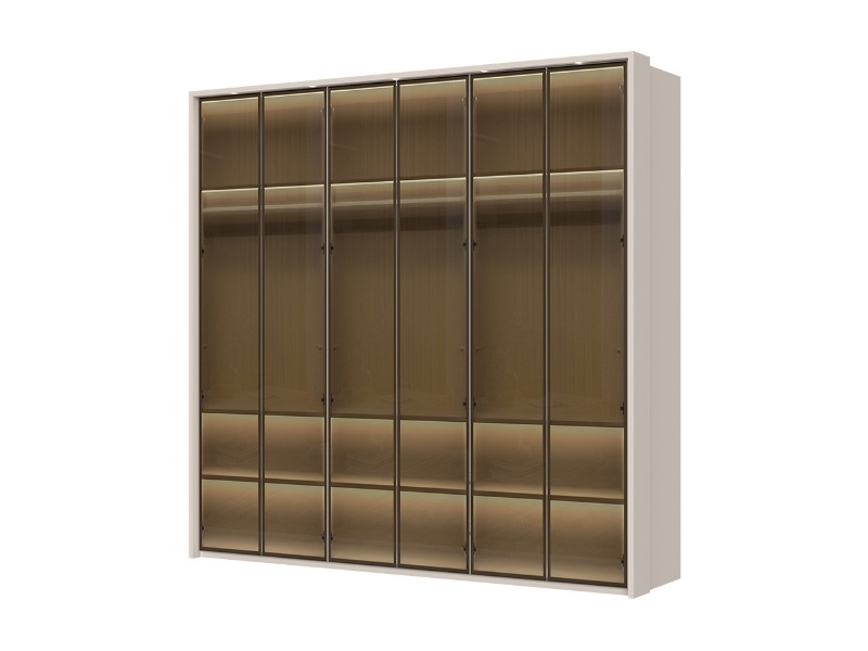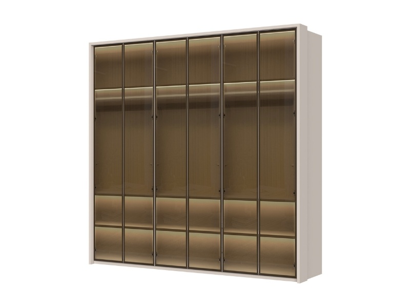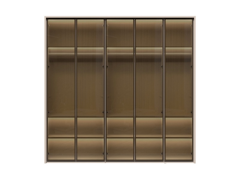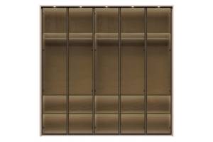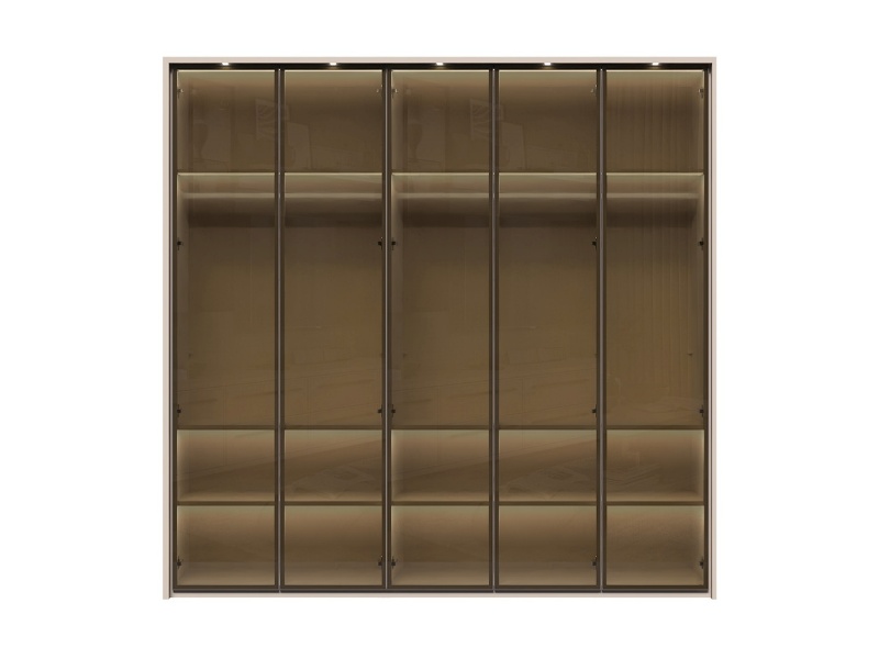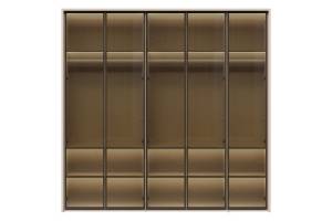 Dulap cu 5 usi cu balamale OPERA 227x224x56cm casmir/ sticla Parsol, manere maro